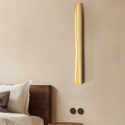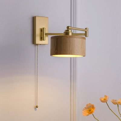 Modern Minimalist Retractable Round Trapezoidal Copper Wood 1-Light Wall Sconce Lamp For Bedroom