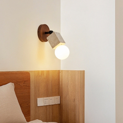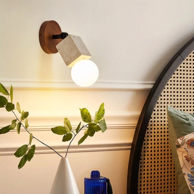 Modern Minimalist Cylinder Rectangle Wood Greystone 1-Light Wall Sconce Lamp For Living Room