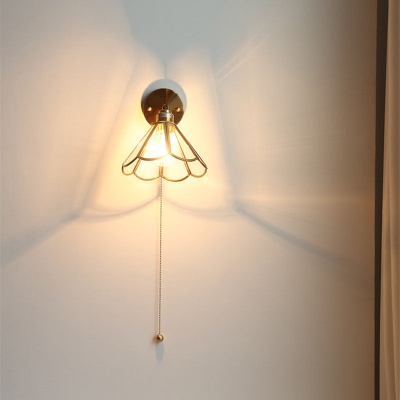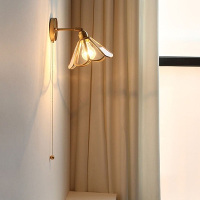 Traditional Vintage Tapered Petal All Copper Glass 1-Light Wall Sconce Lamp For Bedroom
