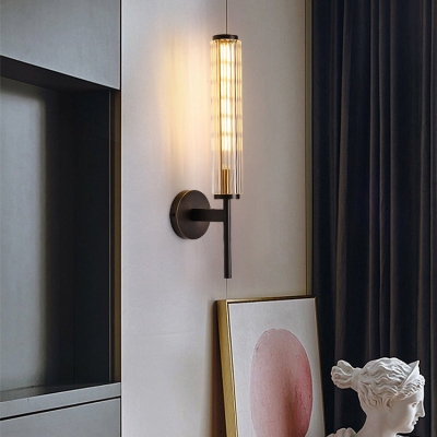 Modern Luxury Brass Glass Cylinder 1-Light Wall Sconce Lamp For Bedroom