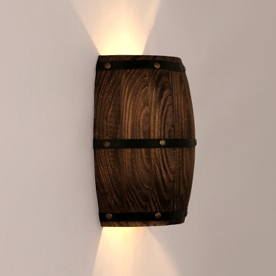Traditional Rustic Wood Wine Barrel Design 1-Light Wall Sconce Lamp For Dining Room