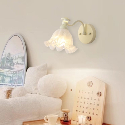 Traditional French Iron Glass Flower 1-Light Wall Sconce Lamp For Bedroom