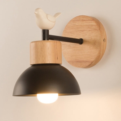 Modern Minimalist Round Half Circle Bird Wood Iron Resin 1-Light Wall Sconce Lamp For Living Room