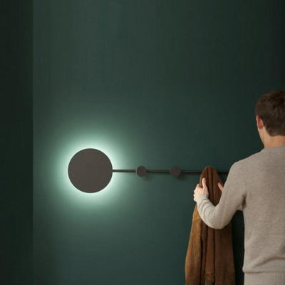 Modern Minimalist Round Long Coat Rack Shelf Iron LED Wall Sconce Lamp For Bedroom