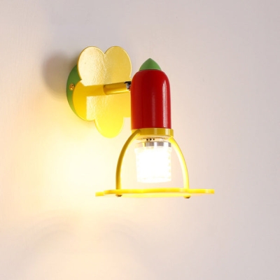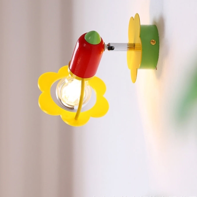 Contemporary Scandinavian Iron Acrylic Flower Shade 1-Light Rocker Arm Wall Sconce Lamp For Bedroom