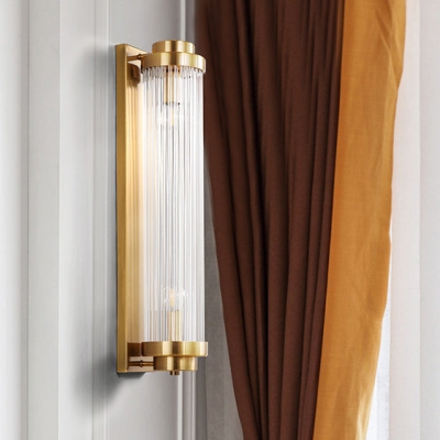 Traditional European Iron Glass Cylinder 2-Light Wall Sconce Lamp For Living Room