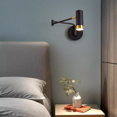 Modern Minimalist Cylinder Telescopic Swing Arm Iron 1-Light Wall Sconce Lamp For Bedroom