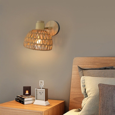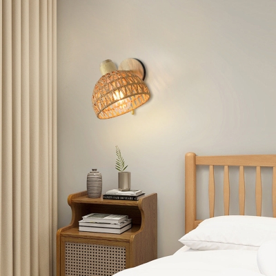 Traditional Farmhouse Paper Rattan Weaving Hollow Out Dome 1-Light Wall Sconce Lamp For Bedroom