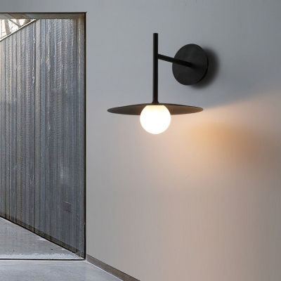 Modern Minimalist Iron Glass Disc Round Plate 1-Light Wall Sconce Lamp For Living Room