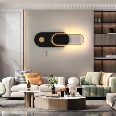 Modern Minimalist Oval Iron Acrylic LED Wall Sconce Lamp For Bedroom