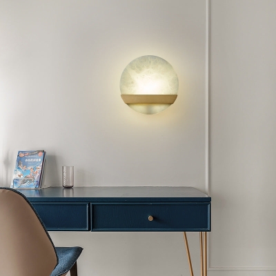 Modern Minimalist Round Copper Marble LED Wall Sconce Lamp For Bedroom