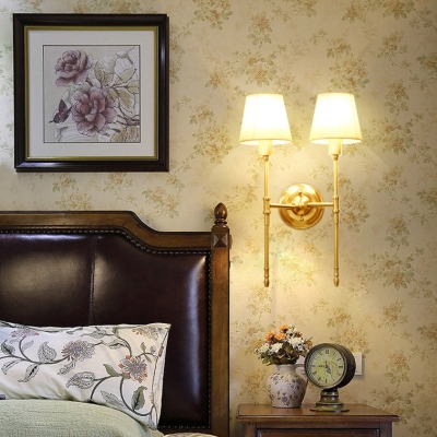 Traditional Rustic Copper Fabric Cylinder 1/2 Light Wall Sconce Lamp For Bedroom