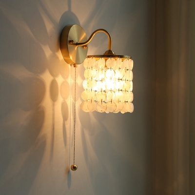 Traditional Vintage Round Shell Crystal Iron Frame 1-Light Wall Sconce Lamp For Living Room