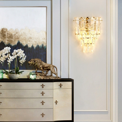 Modern Luxury Brilliant Crystal Stack Iron 2-Light Wall Sconce Lamp For Living Room