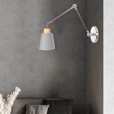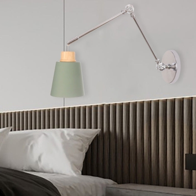 Modern Minimalist Retractable Cylinder Iron Zinc Wood 1-Light Wall Sconce Lamp For Bedroom