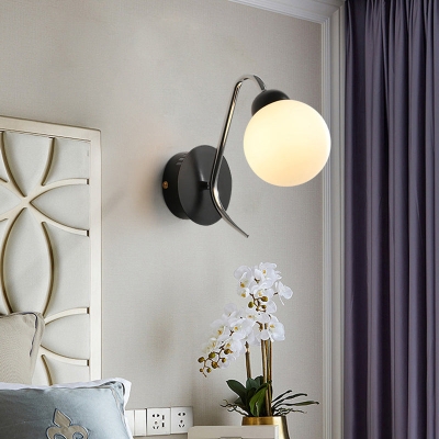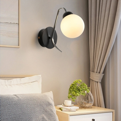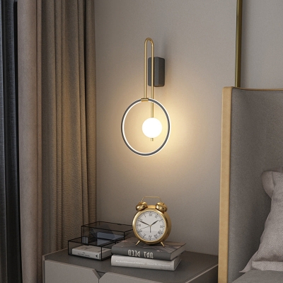 Modern Minimalist Iron Glass Circular Arc Ball 1-Light Wall Sconce Lamp For Bedside