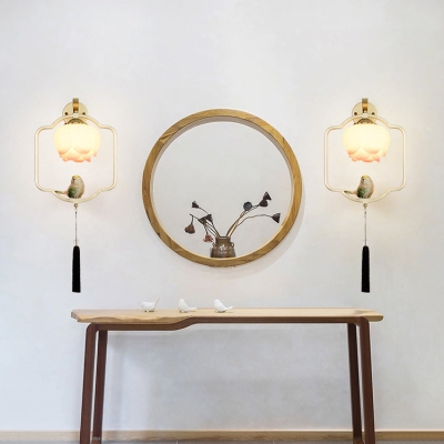 Traditional Chinese Iron Resin Lotus Flower Elliptical Irregular Shape 1-Light Wall Sconce Lamp For Dining Room