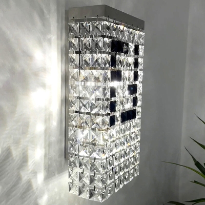 Modern Minimalist Rectangular Small Square Stainless Steel Crystal 3-Light Wall Sconce Lamp For Living Room