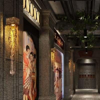 Modern Luxury Square Teardrop Copper Crystal 1-Light Wall Sconce Lamp For Bedroom