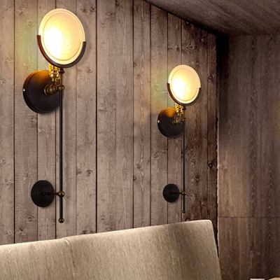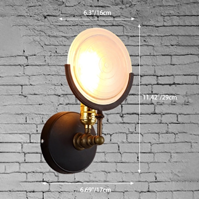 Contemporary Industrial Iron Glass Round Disc 1-Light Wall Sconce Lamp For Dining Room