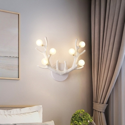 Contemporary Creative Resin Antler Branch Glass Shade 6-Light Wall Sconce Lamp For Bedroom