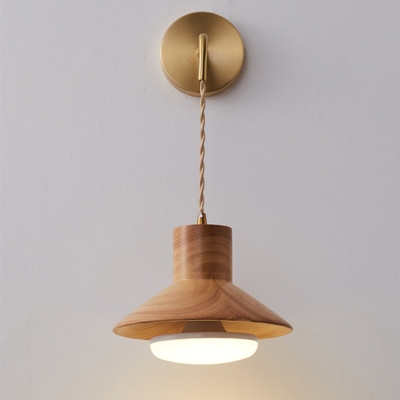 Modern Minimalist Wood Iron Cylinder 1-Light Wall Sconce Lamp For Bedside