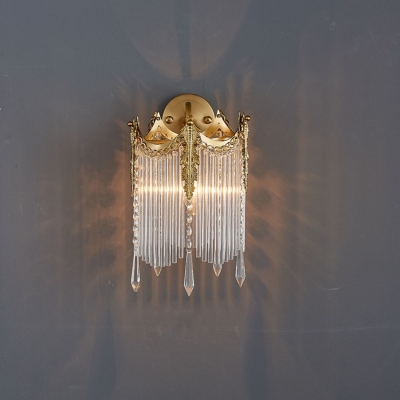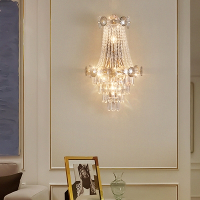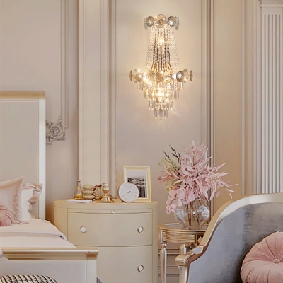 Modern Luxury Tassel Inverted Triangle Hardware Crystal 3-Light Wall Sconce Lamp For Living Room