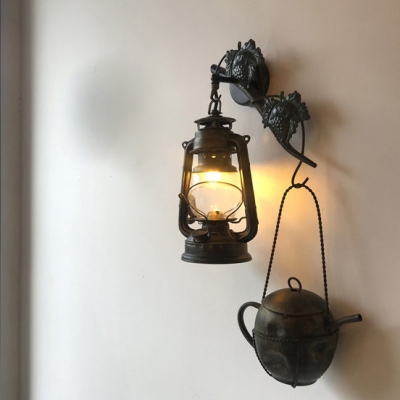 Traditional Vintage Horse Lamp Kettle Iron 1-Light Wall Sconce Lamp For Living Room