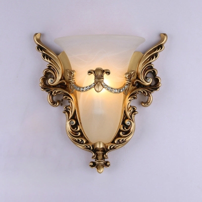 Traditional European Wings Cup Resin Glass 1-Light Wall Sconce Lamp For Bedroom