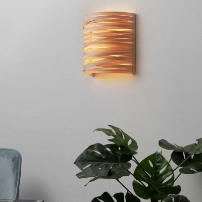 Traditional Japanese Wood Veneer Arch 1-Light Wall Sconce Lamp For Bedside