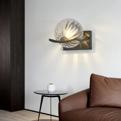Modern Simplicity Iron Water Pattern Glass Ball Shade 1-Light Wall Sconce Lamp For Bedroom