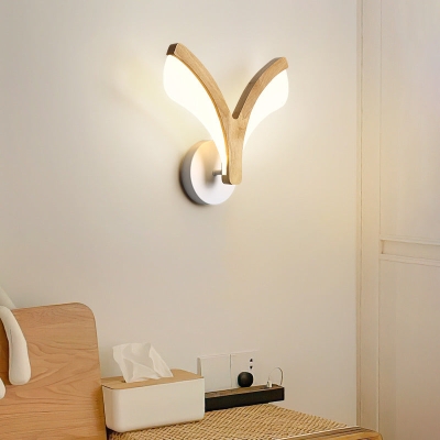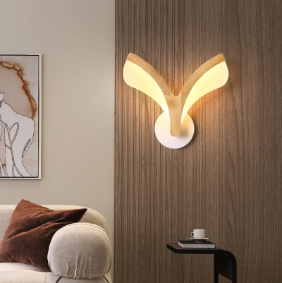 Traditional Japanese Curved Wood Acrylic LED Wall Sconce Lamp For Bedroom