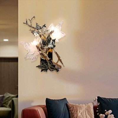 Modern Luxury Copper Colored Glass Maple Leaf Branch 2-Light Wall Sconce Lamp For Living Room