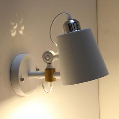 Contemporary Scandinavian Macaron Iron Shade Wood 1-Light Wall Sconce Lamp For Bedroom