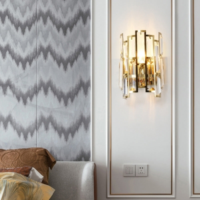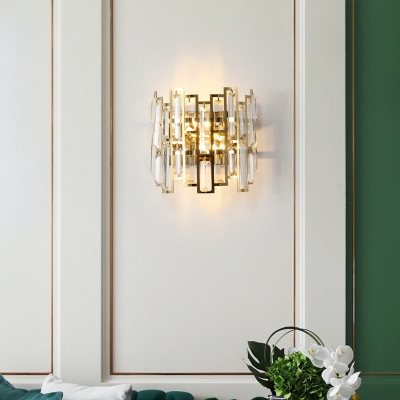 Modern Luxury Stainless Steel Crystal Multiple Rectangular 1/2 Light Wall Sconce Lamp For Living Room