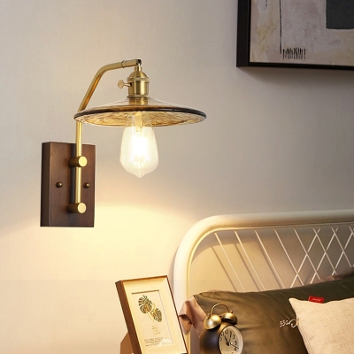 Contemporary Simplicity Copper Wood Glass Round Conic 1-Light Wall Sconce Lamp For Bedside