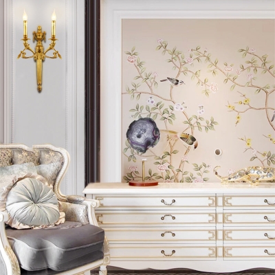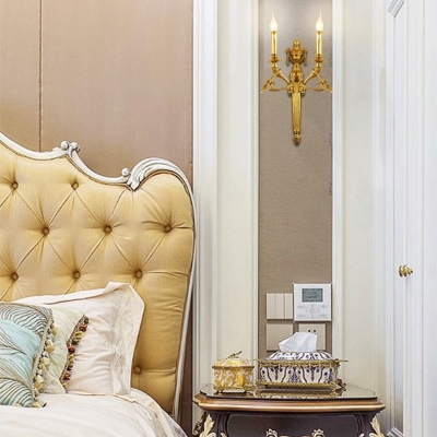 Traditional European Brass Candle Candleholder 2-Light Wall Sconce Lamp For Bedroom