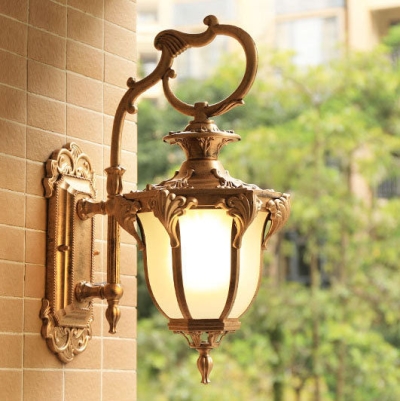 European Retro Aluminum Glass Carved Lantern 1-Light Outdoor Waterproof Wall Sconce Lamp