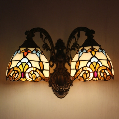 Vintage Tiffany Dome Stained Glass 2-Light Wall Sconce Lamp
