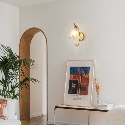 Nordic Full Brass Glass Flower 1-Light Wall Sconce Lamp