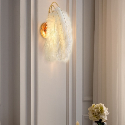 Nordic Minimalist Feather Leaf Gold 1-Light Wall Sconce Lamp