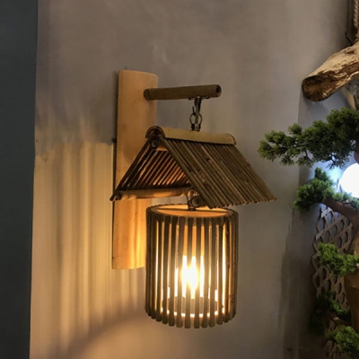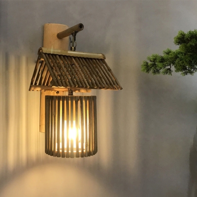 Modern Simplicity Bamboo Weaving Cylinder 1-Light Wall Sconce Lamp