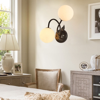 Nordic Minimalist Branch Leaf Glass Ball 2-Light Wall Sconce Lamp