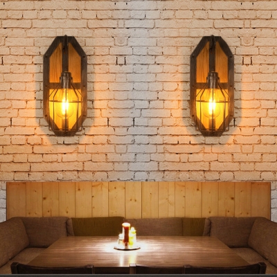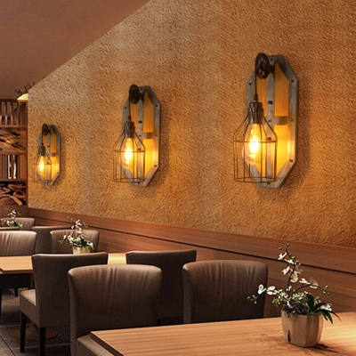 Industrial Vintage Wood Base Cage 1-Light Wall Sconce Lamp