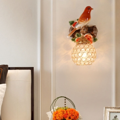 European Vintage Bird Resin Glass 1-Light Wall Sconce Lamp