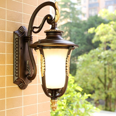Outdoor Vintage Coffee Gilded Aluminum Glass 1-Light Waterproof Wall Sconce Lamp