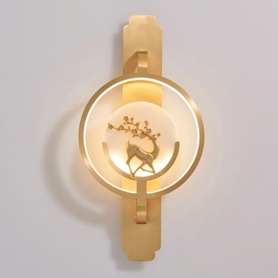 Modern Light Luxury Deer Round Copper Marble LED Wall Sconce Lamp