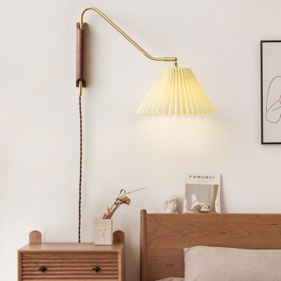 Japanese Minimalist Pleated Copper Fabric 1-Light Wall Sconce Lamp