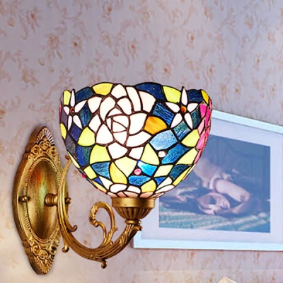 European Vintage Tiffany Rose Stained Glass 1-Light Wall Sconce Lamp