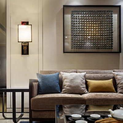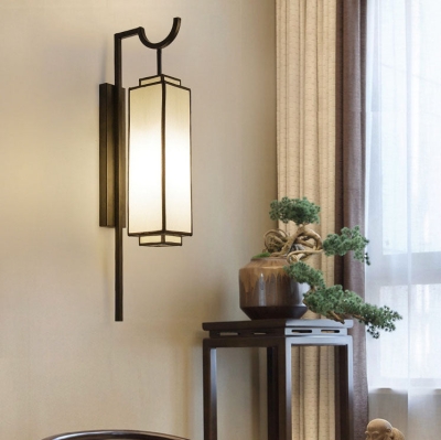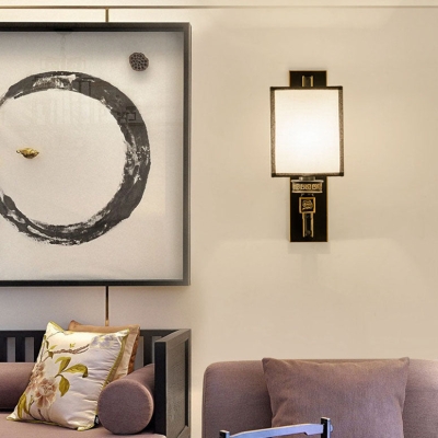 Modern Chinese Fabric Square Iron 1-Light Wall Sconce Lamp